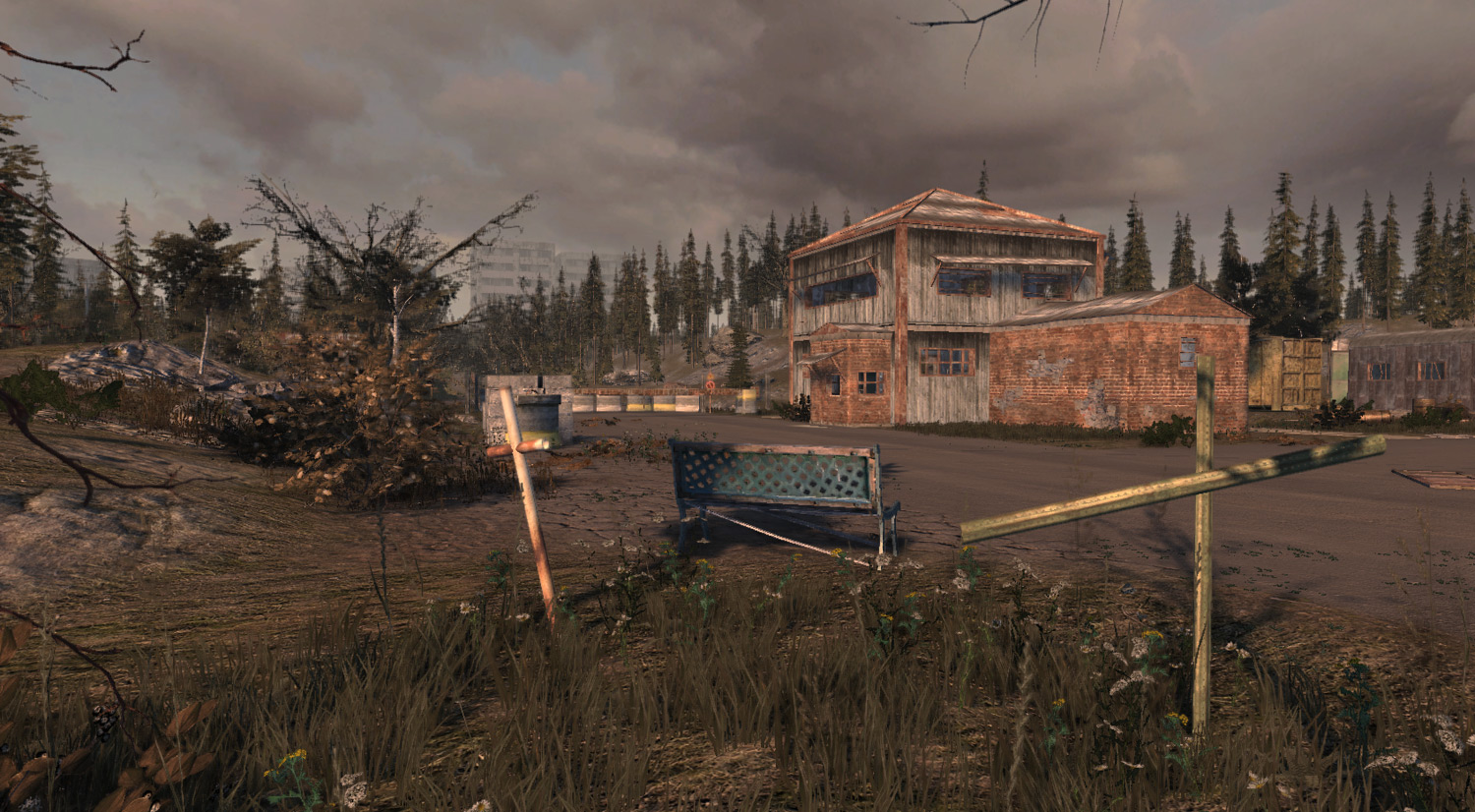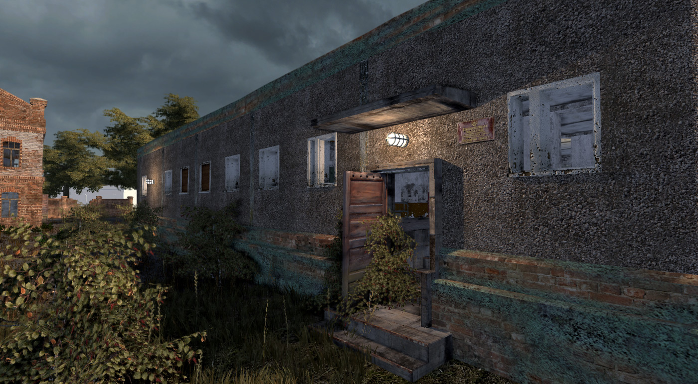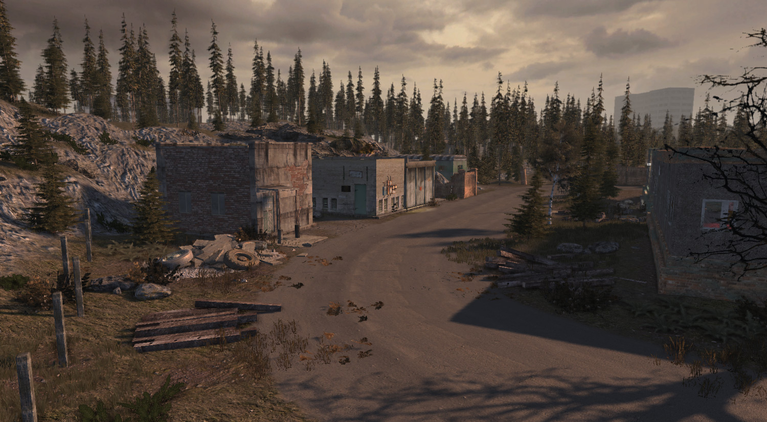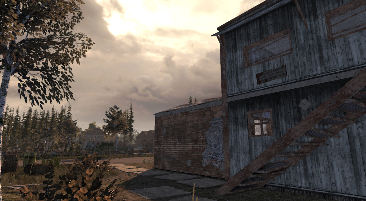 Vegetation and natural props were provided by fellow artist Michael Betke of Pure3D. Using Michael's excellent plants, trees, rocks and more (and with the help of the Leadwerks vegetation layering system) I was able to quickly and efficiently create very realistic looking forests and plant life across the environment. More small props were created to detail the scene like road barriers and wooden furniture, and I began work on more debris props, background prop buildings and decals. The road bridge was completed (based on the famed "Bridge of Death" near Chernobyl) and set up in a modular system like the railroad bridge. I finalized the Bober warehouse building and imported all of the textures into Leadwerks, along with another small "railroad outbuilding" structure with no interior. A demo scene was created using all of the models completed up to this point so we could take some beauty renders.