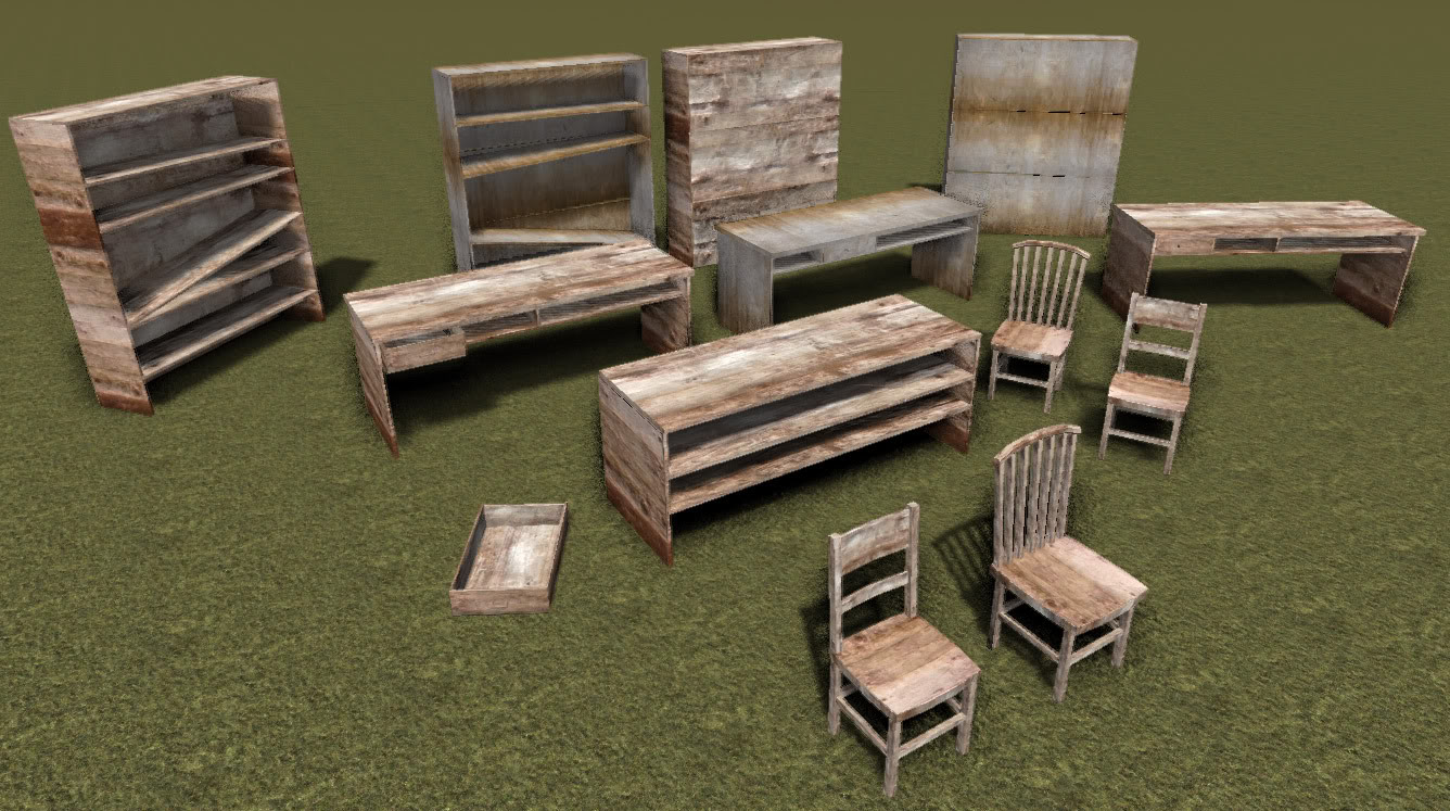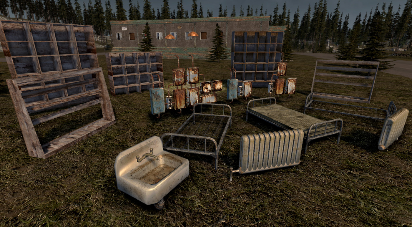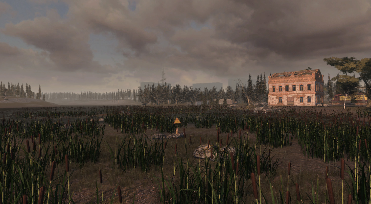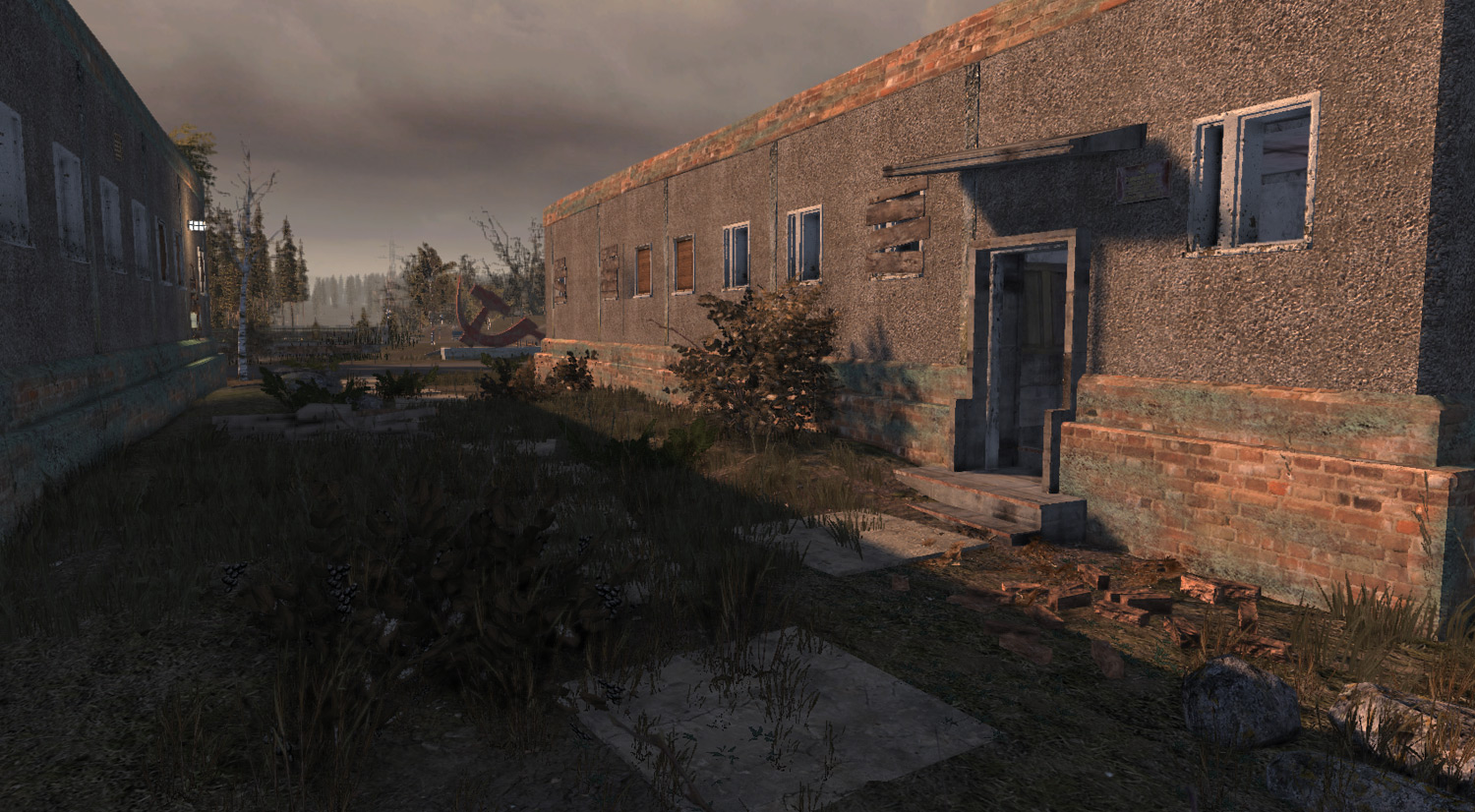 Vegetation and natural props were provided by fellow artist Michael Betke of Pure3D. Using Michael's excellent plants, trees, rocks and more (and with the help of the Leadwerks vegetation layering system) I was able to quickly and efficiently create very realistic looking forests and plant life across the environment. More small props were created to detail the scene like road barriers and wooden furniture, and I began work on more debris props, background prop buildings and decals. The road bridge was completed (based on the famed "Bridge of Death" near Chernobyl) and set up in a modular system like the railroad bridge. I finalized the Bober warehouse building and imported all of the textures into Leadwerks, along with another small "railroad outbuilding" structure with no interior. A demo scene was created using all of the models completed up to this point so we could take some beauty renders.