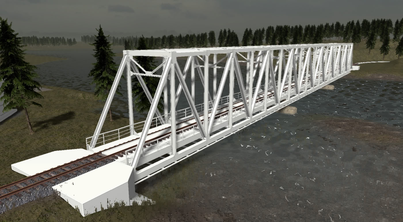 Communities in real life are centered around their infrastructure and methods of transportation, so I continued to lay the virtual infrastructure at the is point so I would be able to base the rest of the level around it. I spent an afternoon taking reference pictures of an abandoned railroad depot in my town, which I used to create a 12 meter section of modular railroad track. These new railroad track sections replaced the placeholder tracks in the environment. Props like wall sections were created and imported, and I began working on a modular railroad bridge to cross the river based off of an actual bridge right next to the Chernobyl NPP.